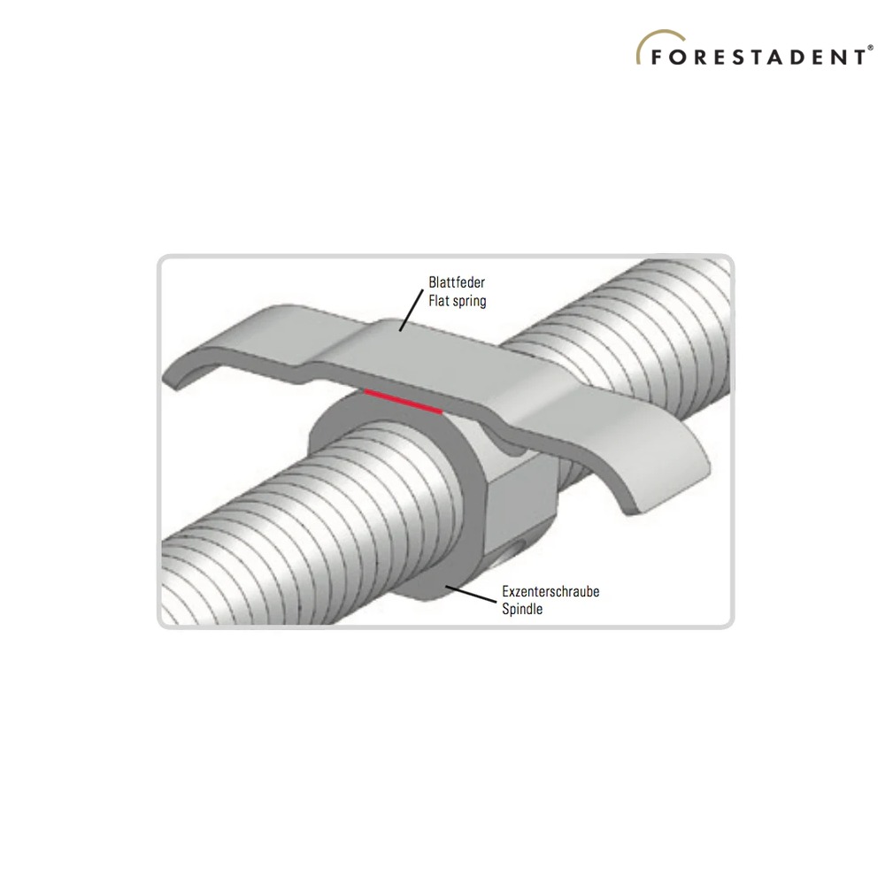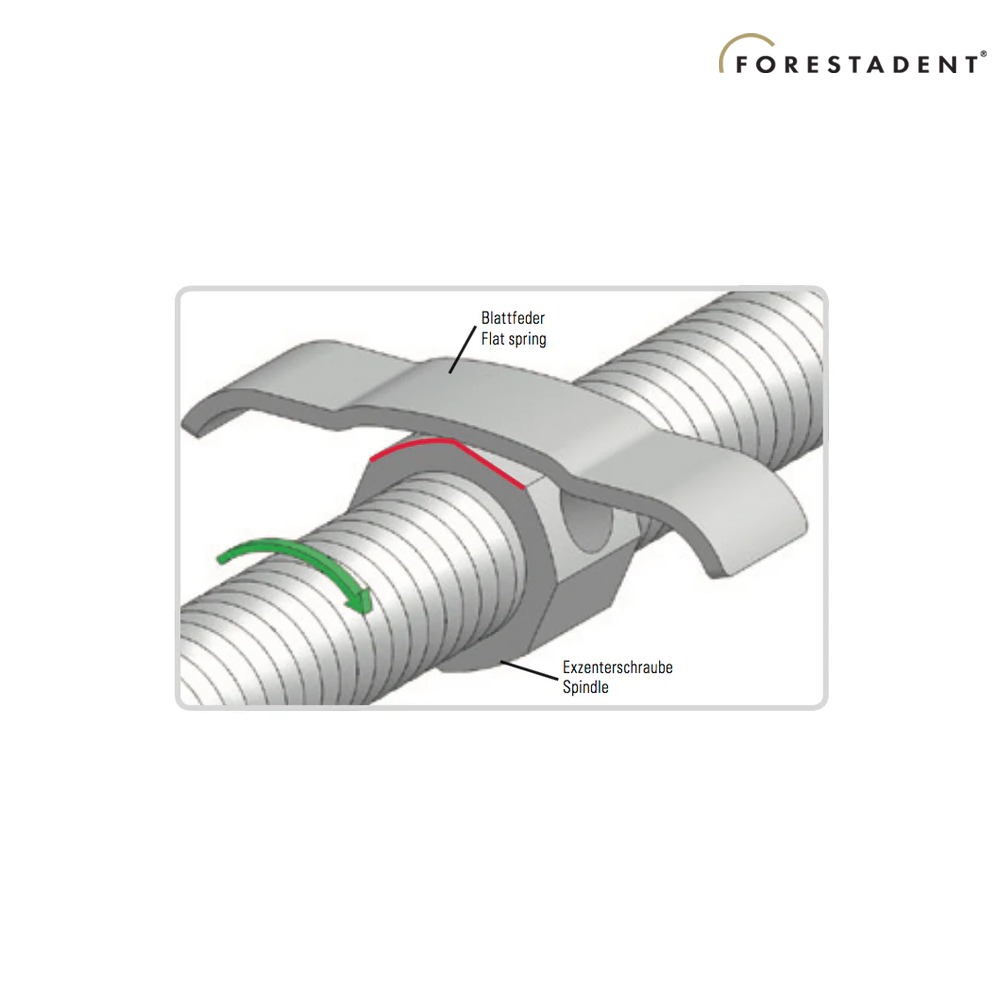 Surub disjunctie Anatomic Snap-Lock & Falling Apart brate indoite Exp = 8 mm Rot = 0,9 mm - Surub de disjunctie anatomic pentru expansiune transversala a maxilei, cu brate indoite, tehnologie "Snap-Lock" si "Falling apart". Suruburile Snap-Lock au un mecanism de protectie impotriva revenirii surubului. Doar medicul sau pacientul il pot intoarce. Dupa activarea surubului, placuta il blocheaza. Atunci cand surubul este activat corect pentru 1/4 tura, atat medicul cat si pacientul pot auzi si simti blocarea surubului. Gaura de la nivelul surubului este intotdeauna in pozitia corecta pentru activare. In cazul unei supra-activari, miscarea surubului Snap Lock poate fi reversibila.Expansiune max. 8 mm, cu pas de 0.9 mm. Dimensiune: 12.5 mm.