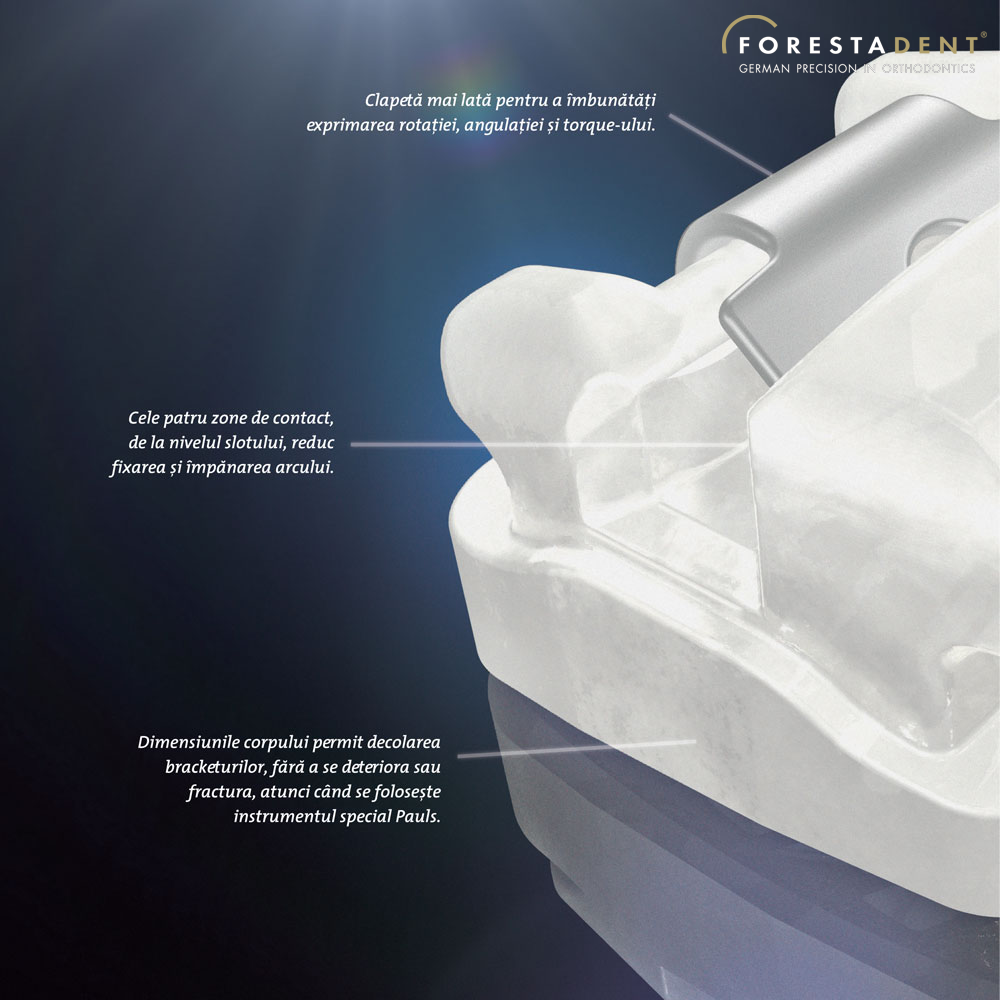 -Usor de decolat: utilizand instrumentul Pauls, bracketul autoligaturant QuicKlear poate fi decolat fara a fi deteriorat.