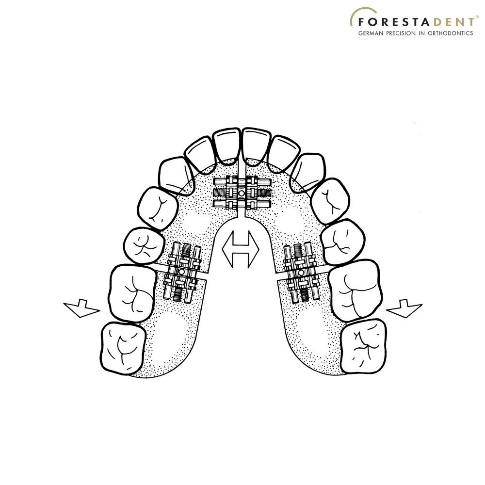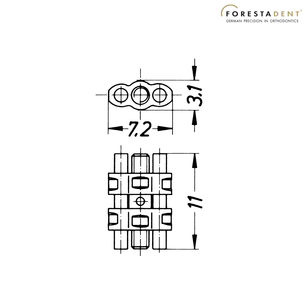 Surub Universal U/L Exp = 7 mm Rot = 0,8 mm - Surub universal din otel inoxidabil folosit pentru expansiunea sagitala si transversala a arcadelor maxilare si mandibulare. Expansiune max. 7 mm cu pas de 0.8 mm.