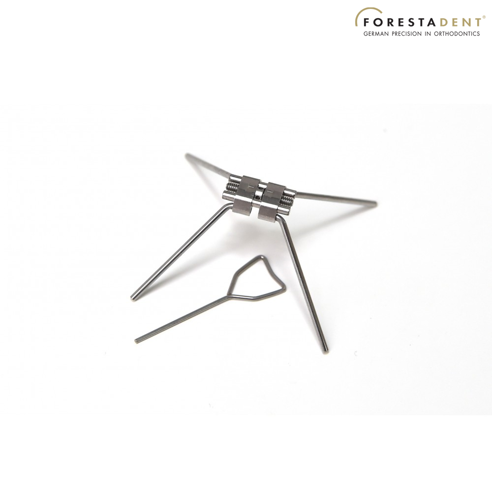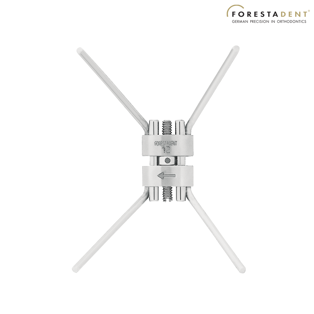Surub disjunctie Anatomic Tip "N" Gen 2 Sunshine brate indoite Exp = 12 mm Rot = 0,9 mm - Surub de disjunctie Anatomic Tip 'N' pentru expansiunea transversala a maxilarului, cu brate indoite, generatia 2 "Sunshine". Respecta anatomia palatului mai bine decat tipurile traditionale de suruburi de disjunctie. Expansiune max. 12 mm, cu pas de 0.9 mm. Dimensiune: 15.5 mm.