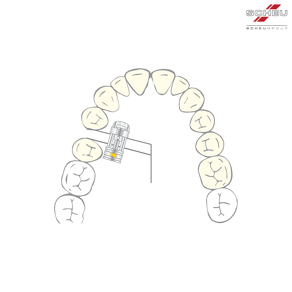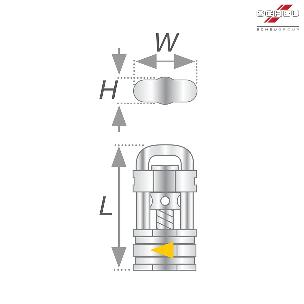 Surub de tractiune pentru inchiderea spatiilor, avand sageata directionala neagra gravata pe suport.