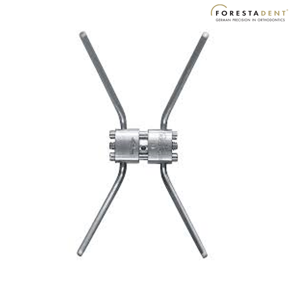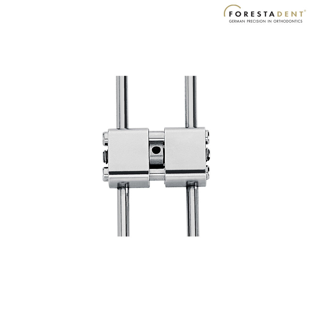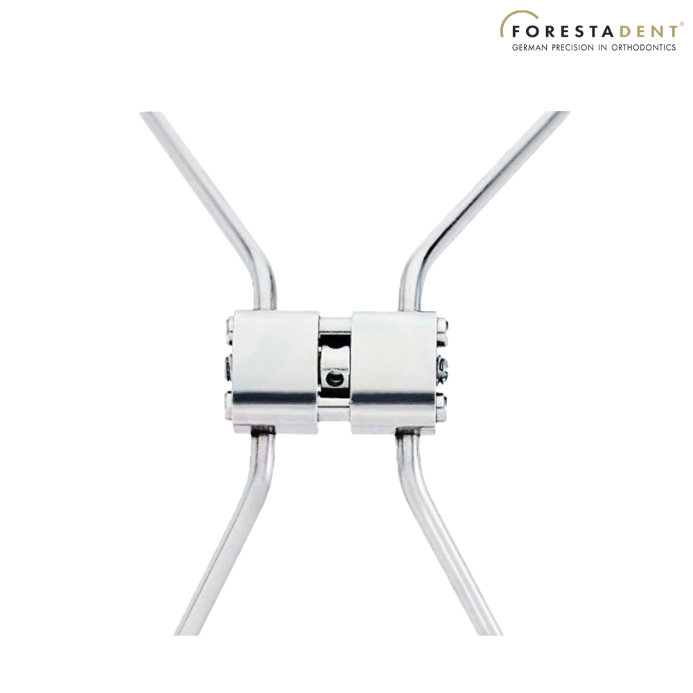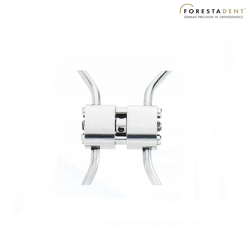 Surub disjunctie Tip "S" Elbel narrow, brate drepte Exp = 10 mm Rot = 0,8 mm - Surub de disjunctie Tip "S" pentru expansiune transversala a maxilei, cu brate drepte, ideal pentru arcada ingusta. Expansiune max. 10 mm, cu pas de 0.8 mm. Dimensiune: 13 mm. Recomandat de Dr. Elbel